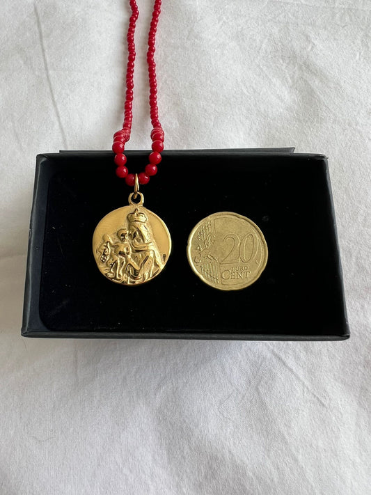Collar coral con Medalla Escapulario