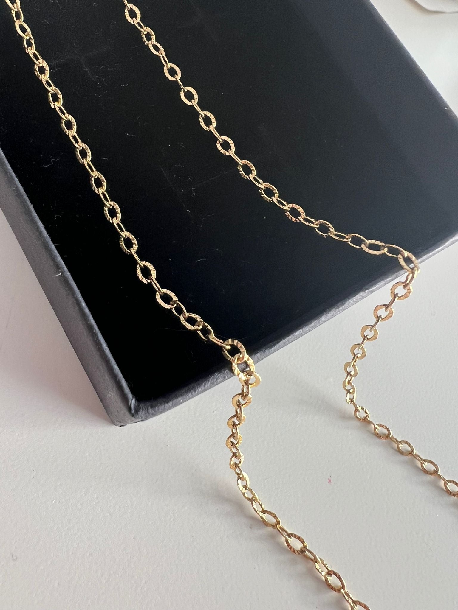 Incluye cadena con cierre de mosquetón disponible en varios estilos y medidas para que puedas elegir la que prefieras.